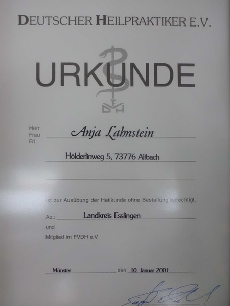 Ausübung der Heilkunde ohne Bestallung gemäß § 1 Heilpraktikergesetz.